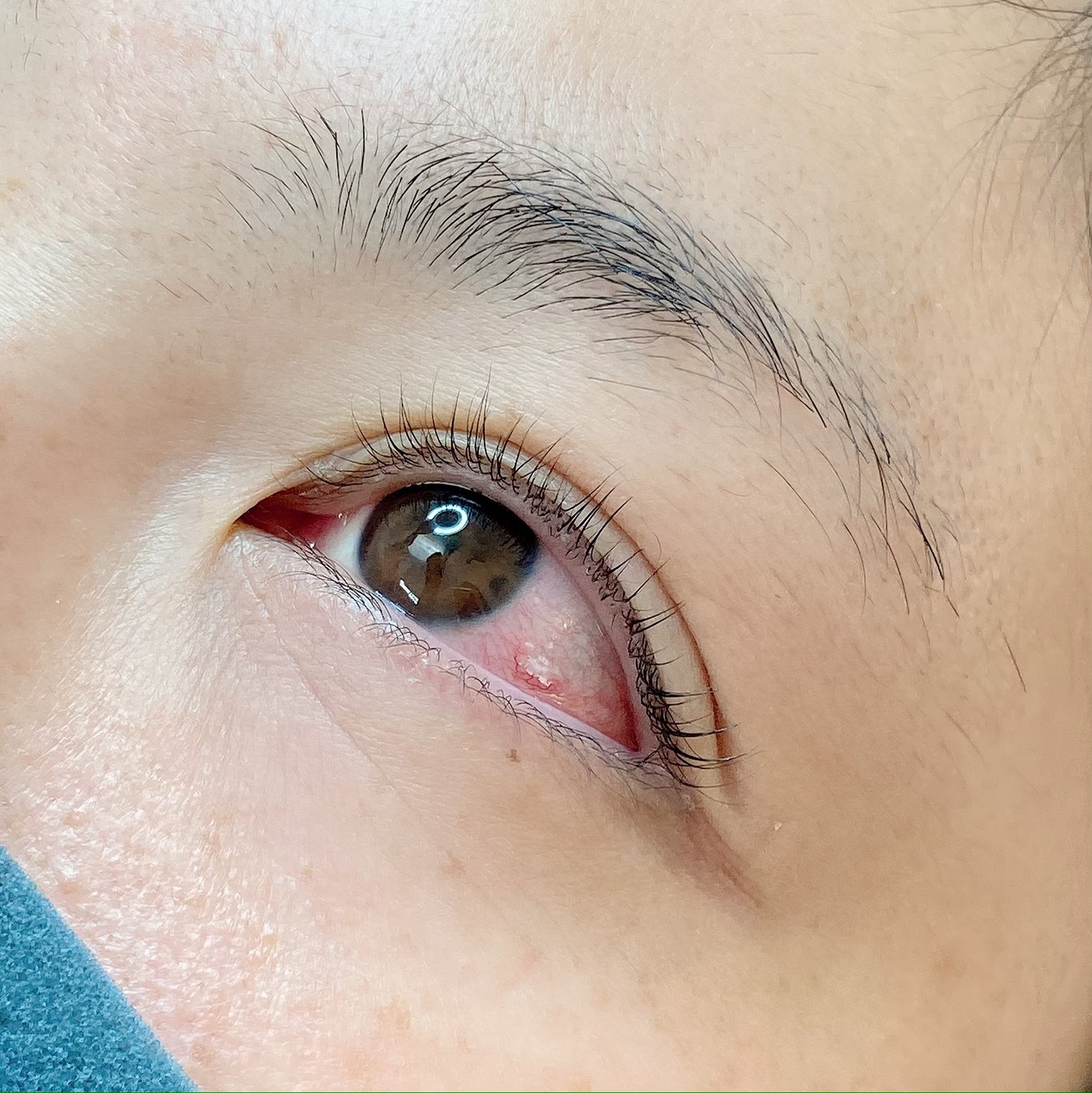 グルーのパッチテストは目尻に自まつ毛と同じくらいの